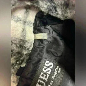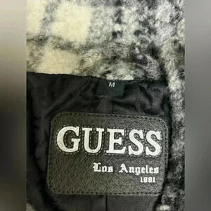 Guess Black & White Wool blend Plaid 3/4 9” Wide Sleeve Asymmetrical Zipper Moto Jacket Size Medium in gently used condition