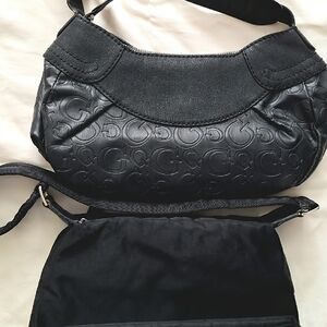 GUESS black Hobo style purse. Worn maybe a handful of times, but does have wear on one side (see pictures). Large zip pocket on inside.