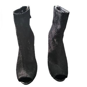 Preowned Guess Black Women's Lace Peep-Toe Ankle Booties Sz 9M in good condition. Boots as some minor wear. Please photo for details.