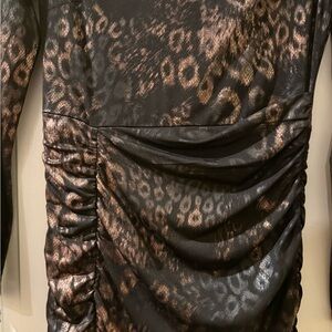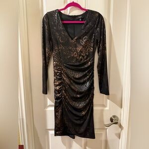 Guess Black and Gold Ruched Bodycon Dress Size Small Cocktail Date Night
