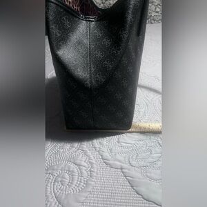 Stylish Guess tote with signature logo design. Features black and red accents. Ideal for everyday use.