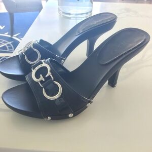 Guess Black and Silver Heels with Sleek Design 7.5 Med.
