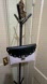 Stylish Guess crossbody bag. Black top with white bottom. Silver chain strap. Pearl accents for elegance.