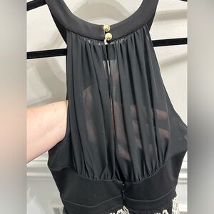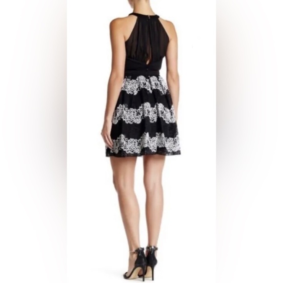 Guess Black and White Lace Mini Halter Key Hole Sheer Back Dress size 2