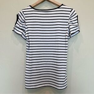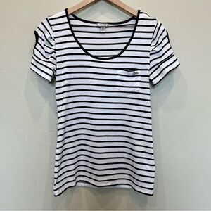 Guess Black and White Striped Scoop Neck Cold Shoulder Short Sleeve Shirt