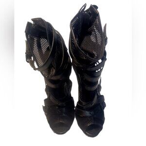 Guess Black leather and Mesh Trend Back Zipper Strappy stiletto Heeled Boots 8.5