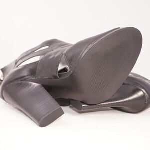 Black leather sleek peep toe heels by Guess