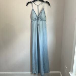Guess Blue Denim Maxi Dress Size XS Spaghetti Strap Summer Boho Festival