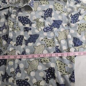 Guess Blue Fish Polka Dot Button Up VTG Shirt Med USA Travel Camp Vacation Retro