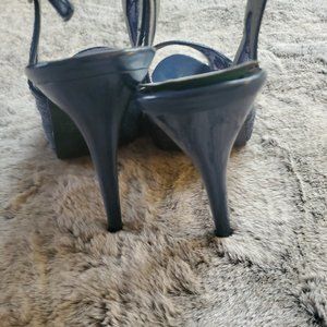 Guess Blue Lace Kitten Toe Pumps 7.5 4 inch heel