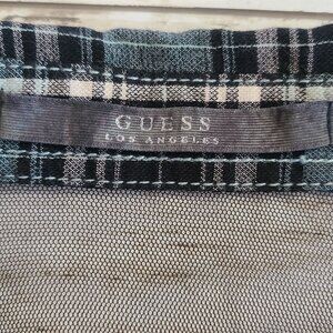 This Guess Blue Plaid Dress features an oversized fit with a drop waist and sheer shoulders. Perfect for a western grunge look, this dress is designed for fashion-forward individuals seeking comfort and style.