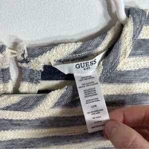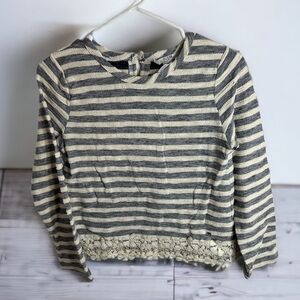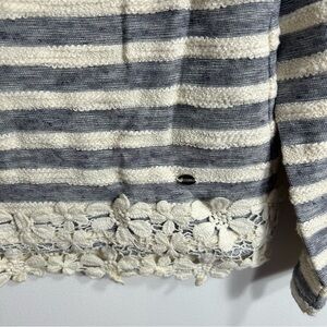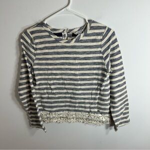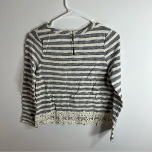 Guess Blue Striped Floral Lace Hem Top Sweater Large Kids