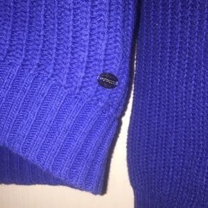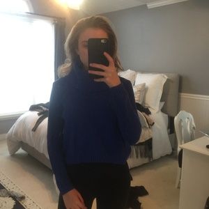 This bright royal blue turtleneck sweater is a little cropped. The turtleneck is comfortable around the neck and is not too tight. It can be dressed up or down. In great condition and only worn a few times.