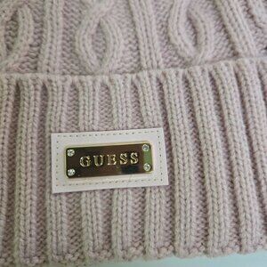 Guess Blush Pink CableKnit Logo Pom Pom Beanie One Size