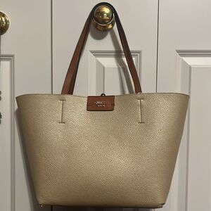 Guess Bobbi Inside Out Reversible Brown Tan Cream Tote Shoulder Bag Purse