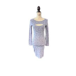 Brand new, with tags. Faux lace print in blue and dark blue. Indigo Multi L/S Cutout Bodycon Print Dress - Tag