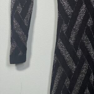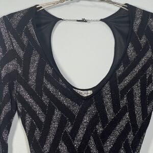 Guess Bodycon Dress Size Small Black Silver Lurex Backless Logo Long Sleeve
