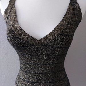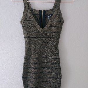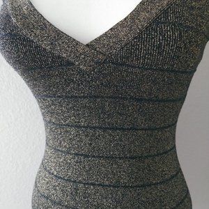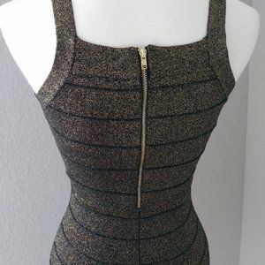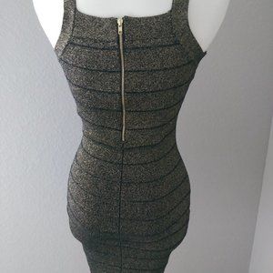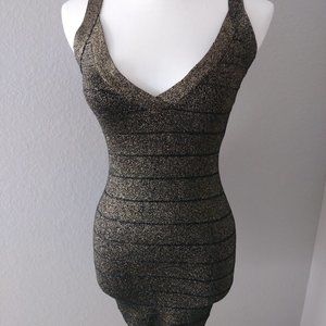 Guess Bodycon V-neck Black Gold Dress LBD Small