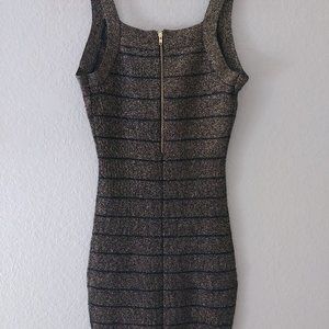 Selling a little black dress (with specks of gold) by Guess in size Small. It has a good amount of stretch that will hug your curves! In pre-loved condition, only worn once. Thanks for looking!