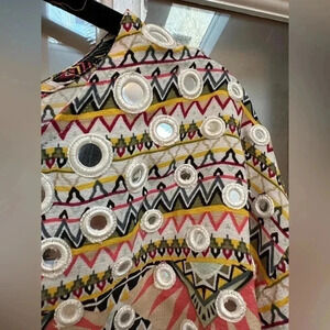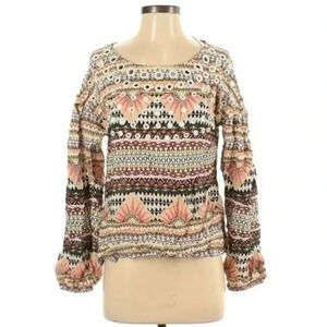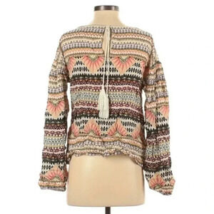 Guess | Bohemian Aztec Southwestern Shiny Accents Long Sleeve Tassel Blouse S