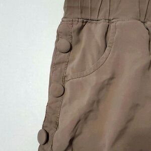 Light chocolate shorts with side buttons accents. Front pockets. Wide elastic waistband with string. Flowy construction. 100% silk.