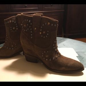 Tan guess studded wedge boot brand new