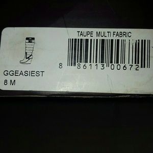 NEW WITH TAG/BOX WHITE SIZE 8 GUESS BOOTS. NEVER WORN. BEAUTIFUL. SIDE ZIPPER AND MATERIAL, FABRIC TOP - CAN FIT MANY. ROUND TOE AND LEATHER MATERIAL PORTION / MULTI FABRIC. ABOUT 3 INCH HEEL. VERY NICE LOOKING AND LOOK FAIRLY EASY TO KEEP UP!
