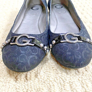 Guess Brand Slip On Casual Shoes US size 8M Flats with Silver Logo Buckle Detail