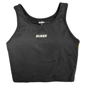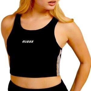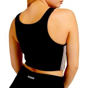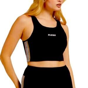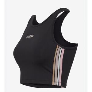 Stay active and stylish in this fitted workout tank top from GUESS designed with colored stripes at each side.