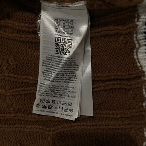 Guess Brown Cable Knit Cardigan with Striped Trim Size M NWOT Grannycore Fall