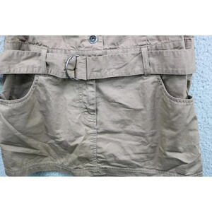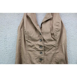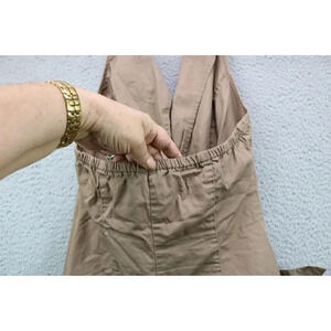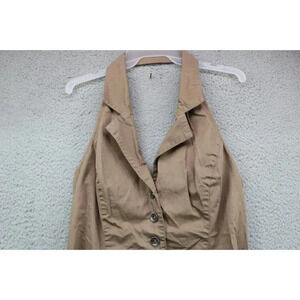 This is a 100% Cotton Brown Mini Dress for Women size Large. It is by Guess. It is a Jr. size. Laying flat, it measures: Armpit to armpit-16" and the length is 33.5". It is the Modele style. It is also belted. The top is halter style with an open back. It is in great condition.