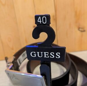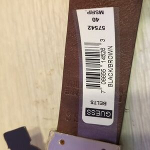 Guess Brown Leather Belt with Silver Buckle Size 40