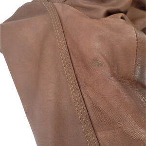 Guess Women’s Brown Genuine Leather Jacket Size L Moto Zip Pockets