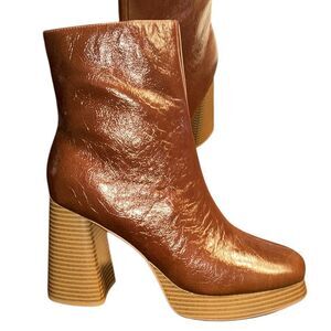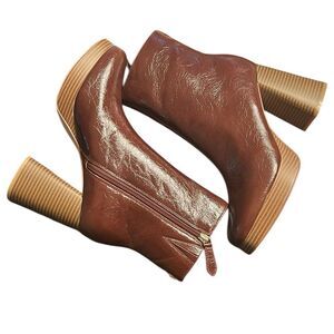 Guess Brown Leather Ankle Boots.Side zipper closure,Block Heel.Tiny scratch on left boots last picture.Approx Heel Height 4”.New Without Box