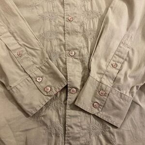 Tap into nostalgic Y2K fashion with this stunning Guess women's button-up shirt, featuring a medium brown color and paisley embroidery. The delicate stitching and vintage-inspired print give this piece a unique boho-meets-Y2K feel, perfect for trendsetters and vintage lovers.