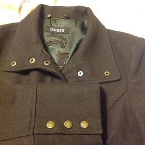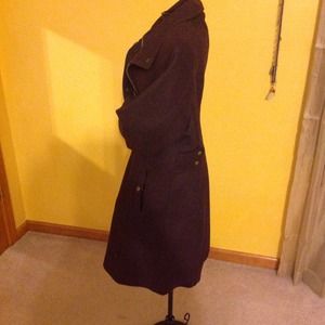 Zip and buttons up on front. It's long down to knees. I'm 5'3. Pockets on front. Silk Matl inside. Great condition. Very warm and dressy coat!