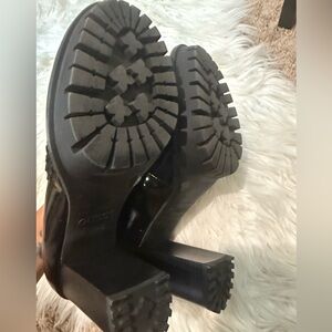 Guess Buckle Logo Faux Patent Chunky Platform Lug Sole Loafer Women Shoes 9.5M