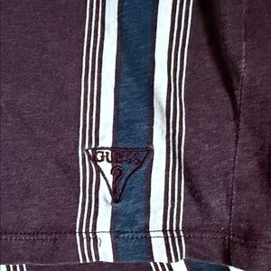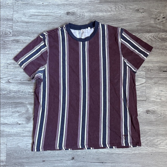 Guess Burgundy and White Striped Short Sleeve Tee