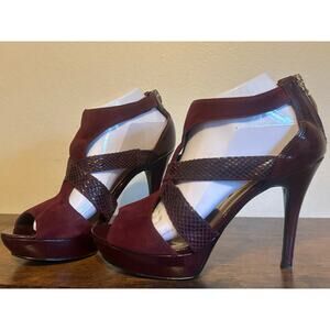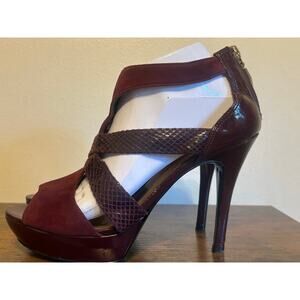 Guess Burgundy peep-toe booties pumps with python leather and suede details 8.5
