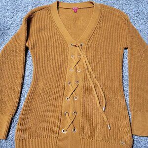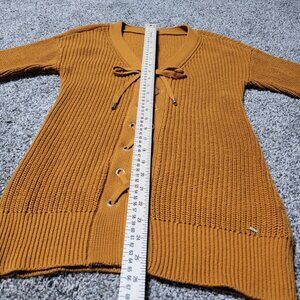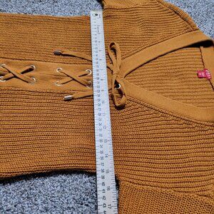 Excellent Condition. Gently preowned. No visible flaws.Lace-up front detail. Ribbed knit in warm earthy burn orange. Vneck.