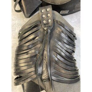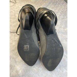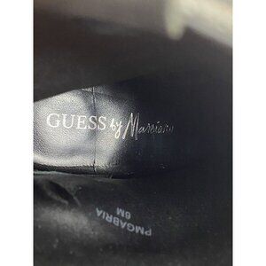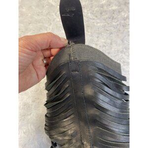 Guess By Marciano VTG ankle Booties Size 6 Fringe Cone Heel Fabric - these boots are so cool but they do have have a flaw - the left inner upper loop is detached from the boot. It can be repaired stitched or even glued but I will leave that to the buyers discretion. The heel/ soles also show signs of wear- full disclosure!
