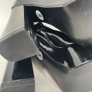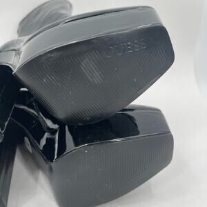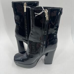 Guess Byra Boots SZ 5 Zipper Block Heel NEW Platform Booties Black Patent NWOT