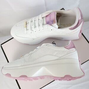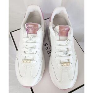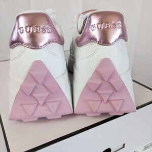 Guess Caleb White Logo Sneakers Women’s 10 NIB Pink Sole Casual Shoes
