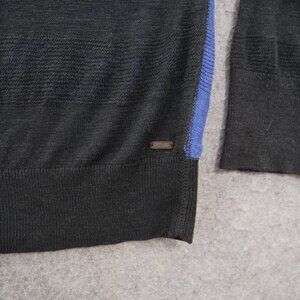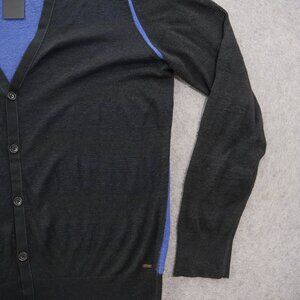 Guess Cardigan Sweater Mens Extra Large Black Blue Button V-Neck Knit Linen New