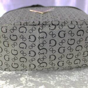 This Guess Charlestown Travel belt bag features the signature all-over G logo print in a sleek black and gray tone. Designed for hands-free convenience, it includes a roomy zip-around main compartment, gold-tone Guess triangle logo hardware, smooth zipper pull, and an adjustable strap to wear around the waist or across the chest. The interior is fully lined with Guess logo fabric and provides plenty of space for essentials like keys, phone, wallet, and travel documents. A stylish and practical everyday or travel accessory.