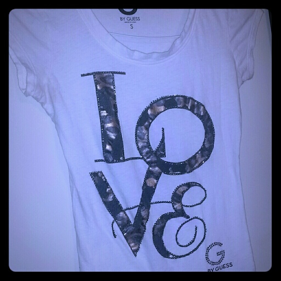 Great LOVE Cheetah Rhinestone T-Shirt made by GUESS