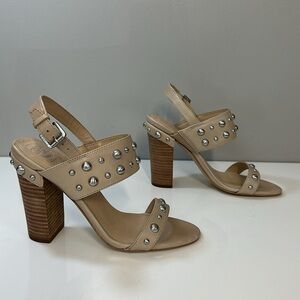 Guess Cheree Tan Leather Studded Heeled Sandals Size 7