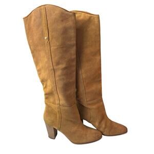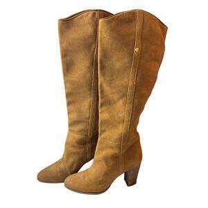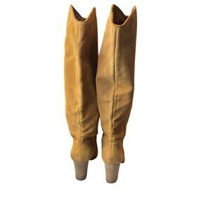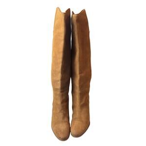 Guess Chestnut Brown Suede Leather Heeled Boots Over the Knee Almond Toe 9M READ