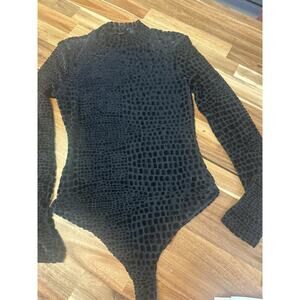 Guess Cindy Croc Mesh Bodysuit Womens Small Black