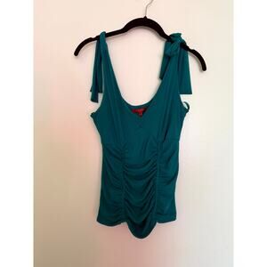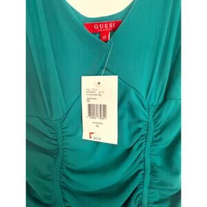 Guess Claire Womens Tank Top Green Mesh Ruched Sleeveless V-Neck Y2K XS NWT